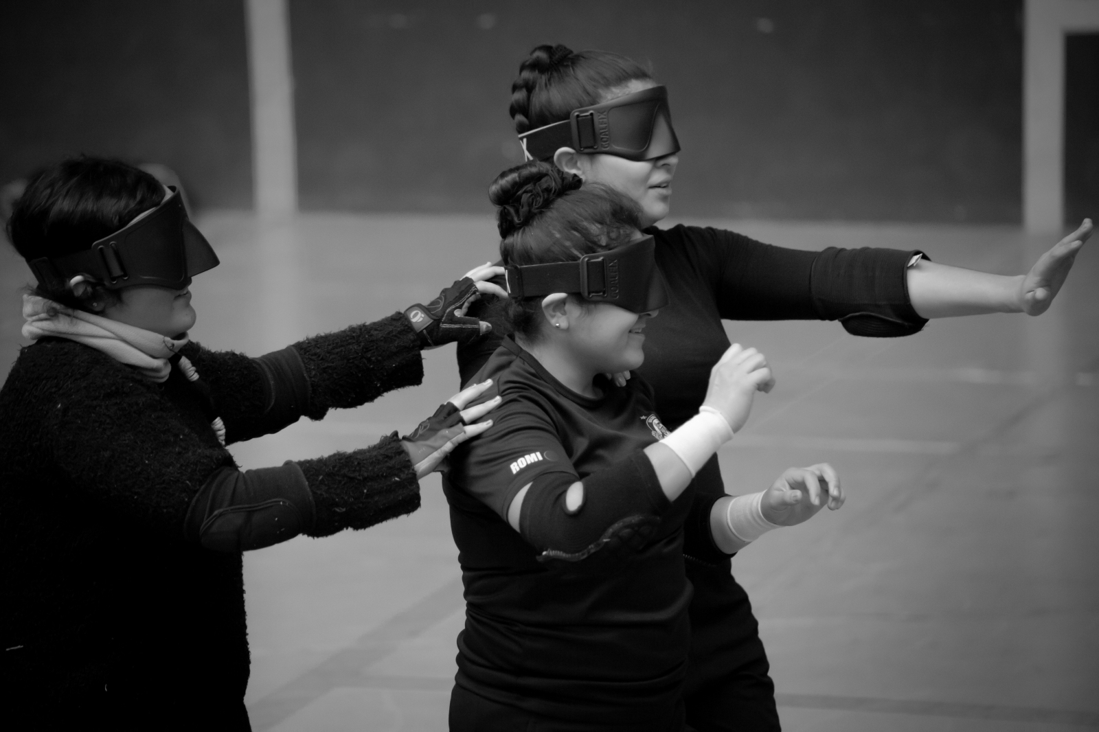 Selección de fotografías. Trabajo en progreso. “A ciegas” es una mirada sobre el ver. Retrata a mujeres ciegas y con disminución visual, entre lo cotidiano de la vida de las deportistas y lo extraordinario de ver sin ver. El trabajo se realiza durante los entrenamientos y partidos de goalball femenino en el Instituto Román Rosell y en el Cenard. Buenos Aires, 2024 - actualidad.